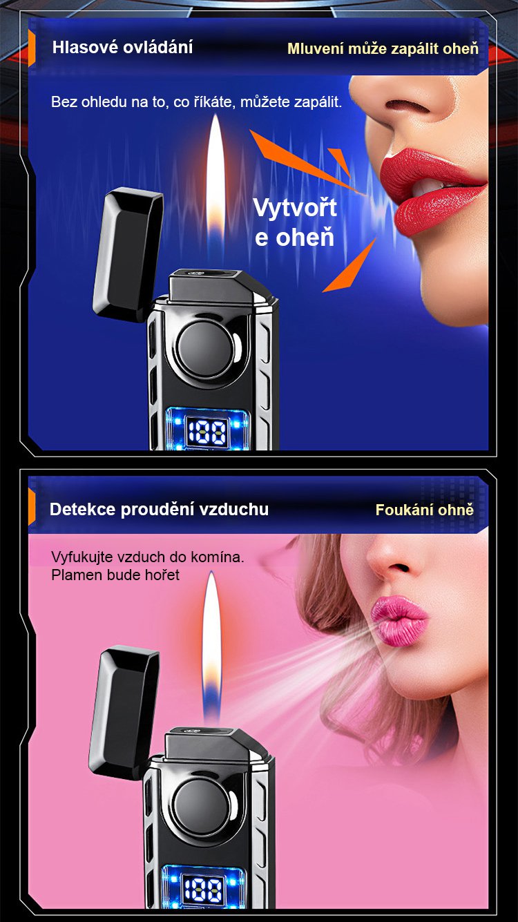 Hlasem ovládaný inteligentní zapalovač odolný proti větru.